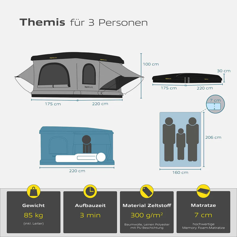 Hartschalen-Dachzelt Horntools Themis PopUp (Gen II) – Aufbau < 3 Min., für 2–3 Personen